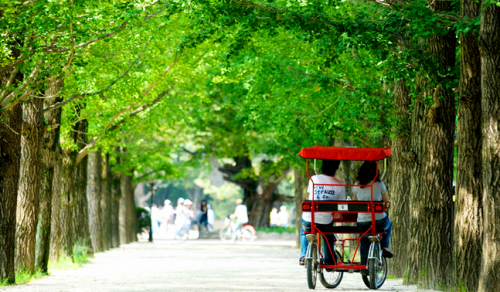 북한강 위에 반달 모양으로 떠 있는 남이섬은 1944년 청평댐이 만들어지면서 생겨난 섬으로 배를 타고 들어가야 한다. 1970년대와 80년대 강변가요제가 열렸고 TV 드라마 「겨울연가」의 촬영지로 내외국인에게 너무나도 잘 알려진 이 섬은 조선 세조 때 병조판서를 지내다 역적으로 몰려 요절한 남이 장군의 묘가 있어 남이섬이라고 불리게 되었다.